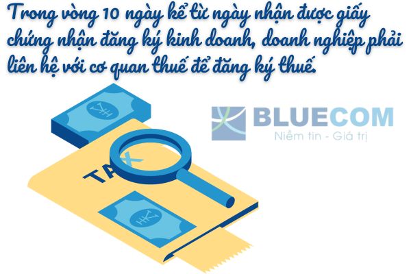 Trong vòng 10 ngày kể từ ngày nhận được giấy chứng nhận đăng ký kinh doanh, doanh nghiệp phải liên hệ với cơ quan thuế để đăng ký thuế. Đối với doanh nghiệp nộp hồ sơ đăng ký chậm sẽ bị phạt cảnh cáo hoặc phạt tiền từ 400.000 đồng – 2.000.000 đồng, mức phạt sẽ tùy thuộc vào tính chất, thời gian và mức độ khác nhau.