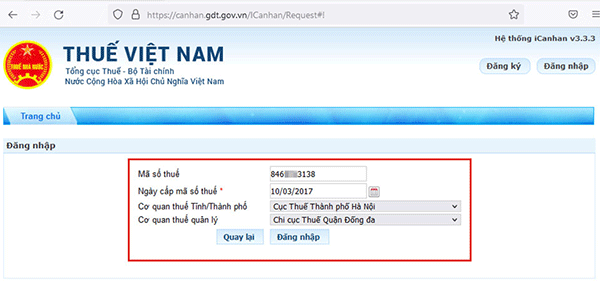 Bước 2: Đăng nhập hệ thống nộp thuế TNCN
