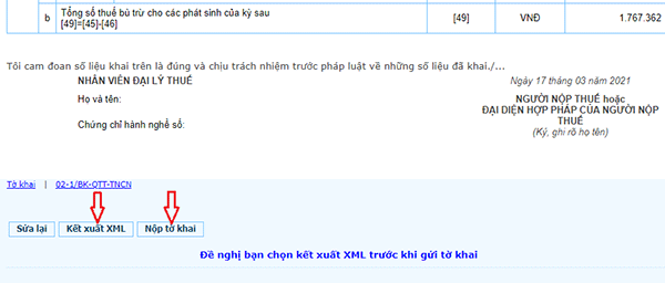 Trường hợp cá nhân có tài khoản giao dịch thuế điện tử: Bạn bấm Lưu bản nháp + Hoàn thành kê khai sau đó kết xuất bản XML => Gửi tờ khai => chọn phụ lục đính kèm => Chọn chứng từ khấu trừ => Tiếp tục sau đó nhập mã xác thực rồi gửi tờ khai cho cơ quan Thuế.