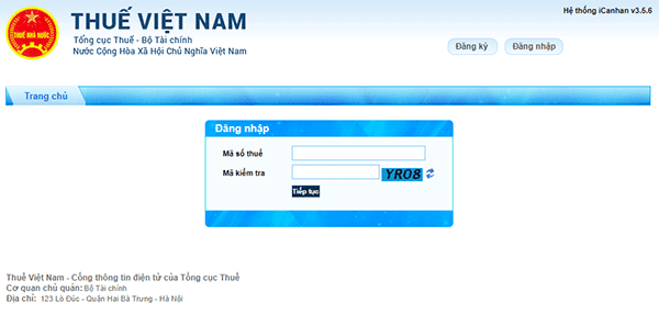 Nếu bạn chưa có tài khoản thì phải thực hiện đăng ký, trường hợp đã có tài khoản trên hệ thống thì chọn mục “Đăng nhập”, bạn điền các thông tin tại trường “Mã số thuế”, “Mã kiểm tra” và ấn “Tiếp tục”.