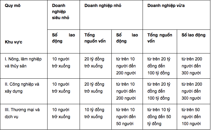 Định nghĩa doanh nghiệp nhỏ và vừa