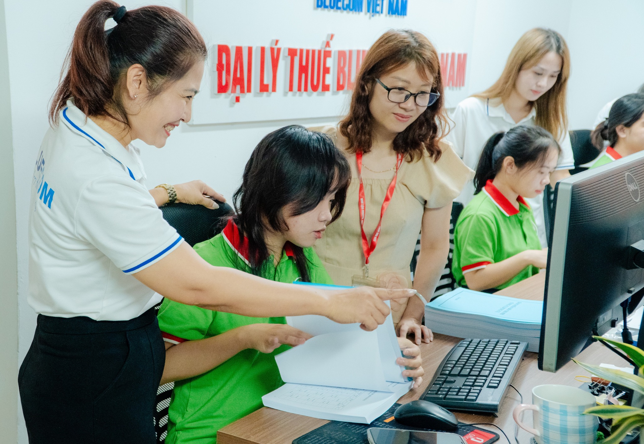 Để kiến thức lý thuyết không còn là những con chữ khô khan, sinh viên chuyên ngành kế toán của Trường Cao đẳng Công Thương Việt Nam đã có cơ hội được thực tập tại công ty Bluecom. Trong quá trình thực tập, sinh viên được giao các nhiệm vụ như xử lý các hồ sơ thuế, lập báo cáo tài chính, và tham gia vào quy trình kiểm toán nội bộ. Dưới sự hướng dẫn trực tiếp từ các kế toán viên và chuyên gia, sinh viên không chỉ có thể áp dụng kiến thức đã học mà còn học hỏi thêm nhiều kỹ năng thực tế. Qua đó, các em dần hoàn thiện bản thân, tự tin hơn khi tiếp cận với thị trường lao động sau khi ra trường.