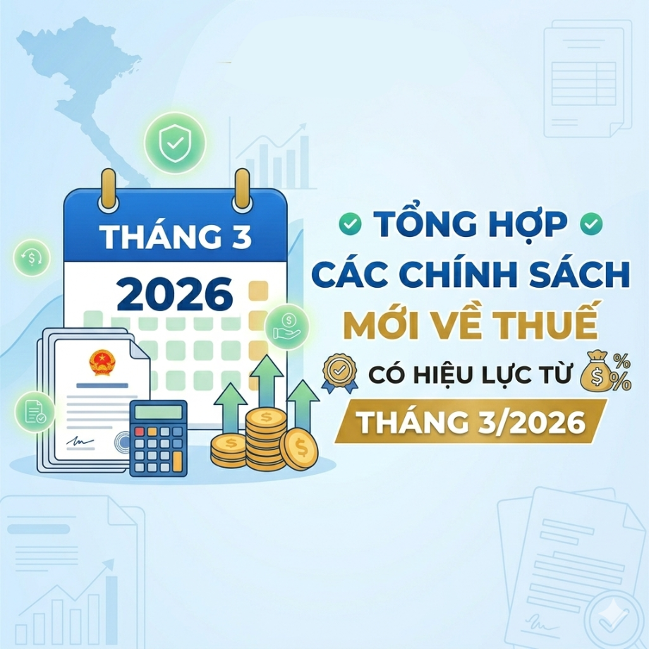 Trong bài viết này, chúng tôi tổng hợp những chính sách thuế quan trọng có hiệu lực từ tháng 3/2026 để giúp người nộp thuế dễ dàng theo dõi và áp dụng đúng quy định.